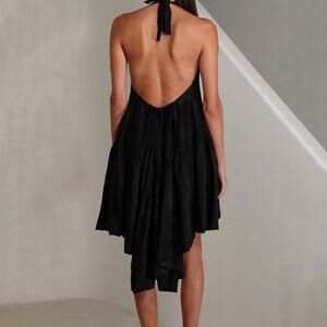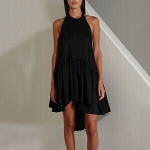 AZEEZA Winston Raw Silk Mini Dress Black High Low Halter Cocktail Party Size S