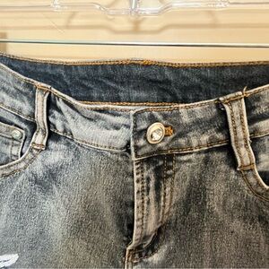 AZI Beaded Black Mid Rise Capri Y2K Vibes women’s Black Distressed Jeans Sz 8