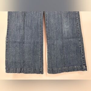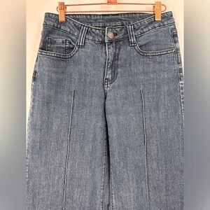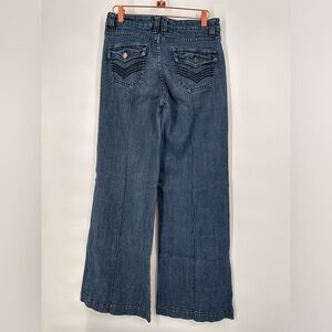 AZI Wide Leg Denim Jeans. Cute pockets with buttons on the back as well as vertical seaming on front and back. Kind of a retro look. Super cute! Size 2