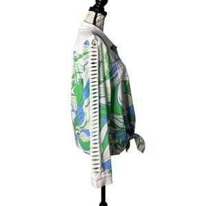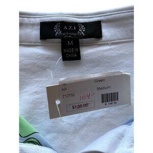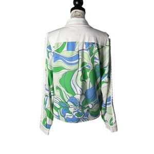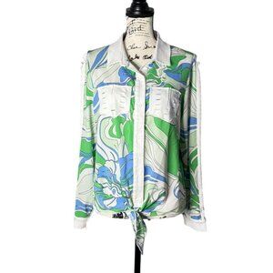 A.Z.I. Womens Top Long Sleeve Button Up Green Blue Floral Print Artsy Size M NEW