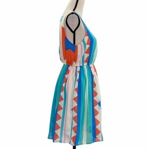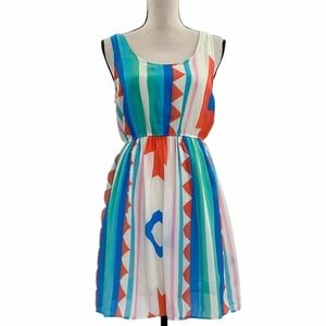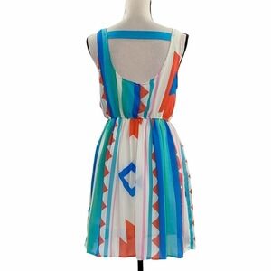 Aztec Boho Printed A-Line Open Back Mini Dress Women's Size Medium