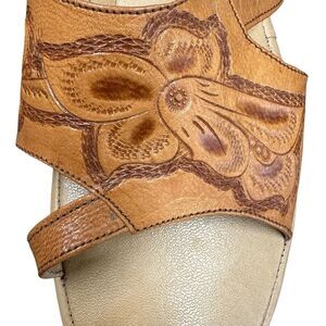 AZTEC Hand Tooled Leather Slide Sandals Size 8