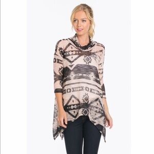 Aztec print cowl neck knit top - charcoal. 95% polyester, 5% spandex. I was surprised at how much cuter these were in person when they arrived 😊