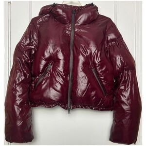 AZTECH MOUNTAIN Burgundy Maroon High Shine Cropped Hooded Ski Snow Puffer Coat S