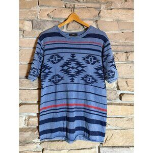 AZUL by Moussy Aztec Knit T-Shirt Sweater Blue Red Geometric Size XL