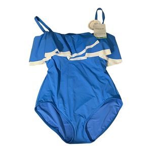 ☀️☀️☀️ AZURE Ruffle Bandeau Bra Sized One Piece Swimsuit KEEPSAKE