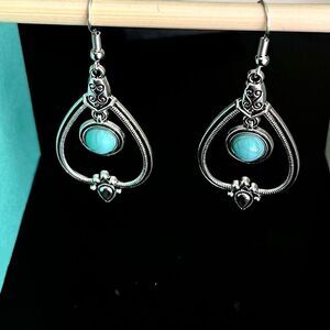 AZY Darling Dangle Turquoise & Silver Earrings