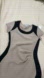 Stylish mini dress by Aa Studio. Features a sleek tan body with bold black accents. Perfect for a night out.