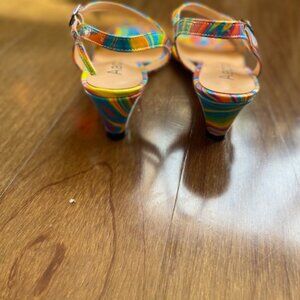 Aachcol Womens Square Toe Wedge Rainbow Swirl size 7 US