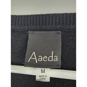 Aaeda Art To Wear Fuzzy Flower Embroidered Sweater M Womens Black Artsy Soft
