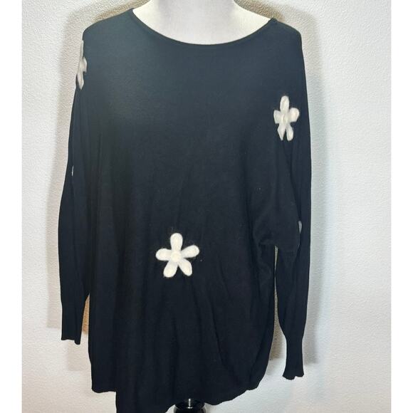 Aaeda Black Daisy Knit Sweater Long Sleeve Soft Floral Pullover Top 1X