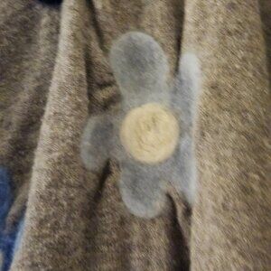 This is the cutest sweater with blue daisy around the collar. This will add color to any outfit with also being minimalistic. This is a lightweight sweater and perfect for cooler weather.