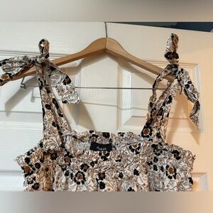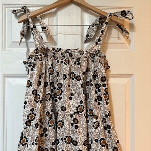 Elegant dress with floral design. Good for Summer & Colors will carry into Fall. Features delicate bow straps. Ideal for any occasion. vacation wedding guest