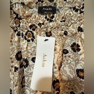 Aakaa Black Brown Cream Babydoll Floral Dress Midi