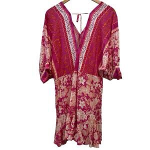 Aakaa Dress S Small Know You Better Fuchsia Pink Floral paisley summer rayon