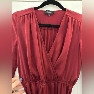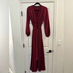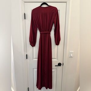 Aakaa Long Sleeve V Neck Tie Waist Maxi Dress Small Burgundy Wine Merlot