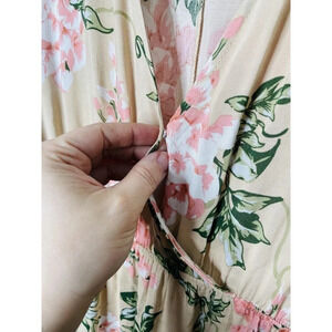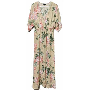 Aakaa Maxi Dress Sz M Faux Wrap Floral Side Slit Woven Kimono Sleeve Cottagecore