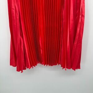 Aakaa Maxi Skirt Size Medium Accordion Pleats Red Satin Long Length Romantic