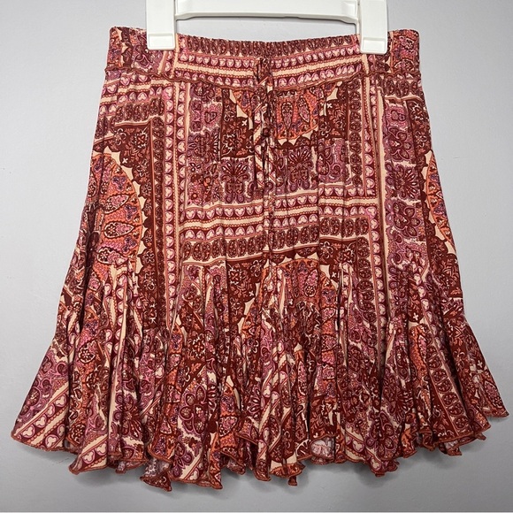 Aakaa Orange Rust Ruffled Fun Flowy Mini Skirt Size Small EUC