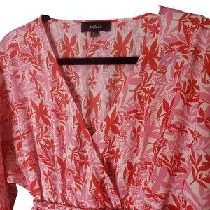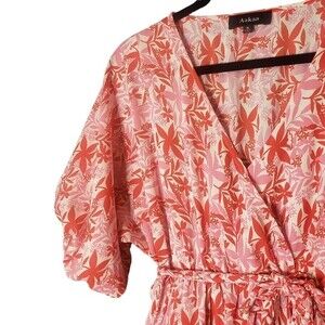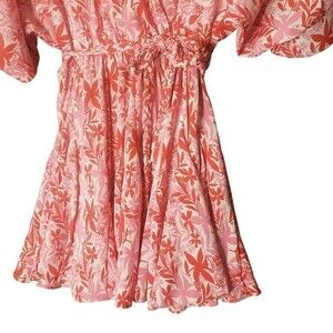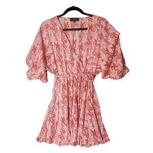 Aakaa Pink Tropical Palms Angel Balloon Sleeve Full Circle Braided Mini Dress S