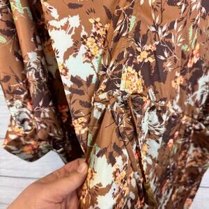 Aakaa Plus Size Tan Floral V-Neck Satin Statement Hem Waisted Dress Size 3X