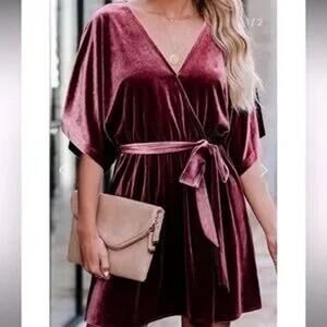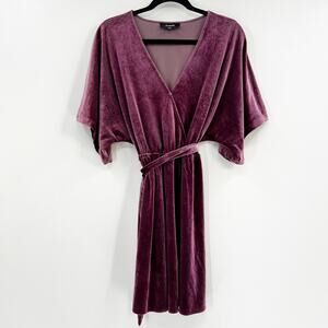 Aakaa Purple Velvet Tunic Wrap Mini Dress M