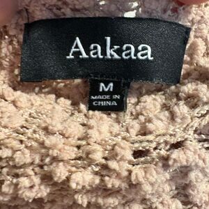Aakaa Sweater Womens Medium Black Cream Tan Striped Popcorn Polyester Soft Comfy