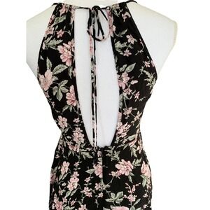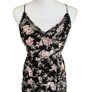 Aakaa Womens Dress Size Medium Floral Spaghetti Straps Open Back Black Floral