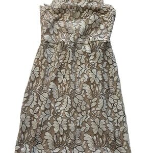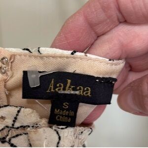 Aakaa Women’s Elegant Floral Lace Tan and Cream Backless Dress size Small