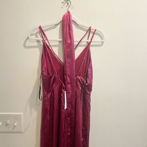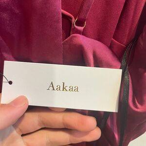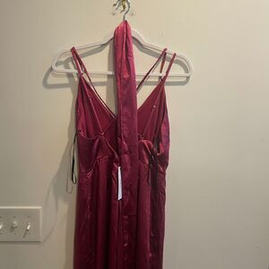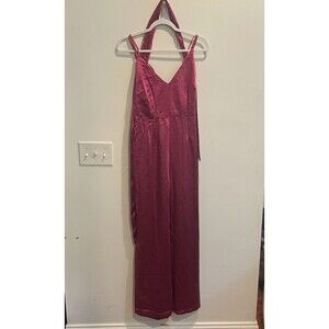 Aakaa Womens Maroon Jumpsuit M Wide Leg Satin V Neck Adjustable Strappy Zip NWT