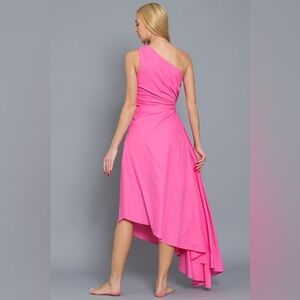 Aakaa Women's Small Bubblegum Pink One Shoulder Asymmetric Gown Linen Cut Out