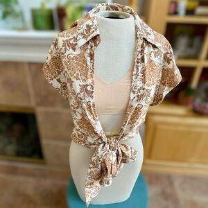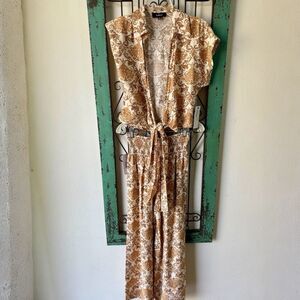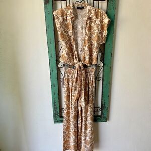 Aakaa two piece set. Elastic waist & pockets with a crop front knot top. This was a sample set. Sexy, summery and comfortable. Wear the top over a bikini or with bralette.