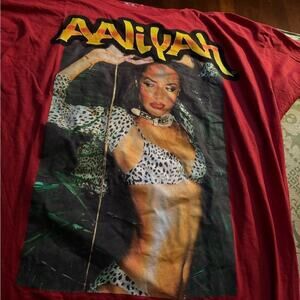Aaliyah Cheetah Berlin Tour Red Short Sleeve T-Shirt, Size Medium