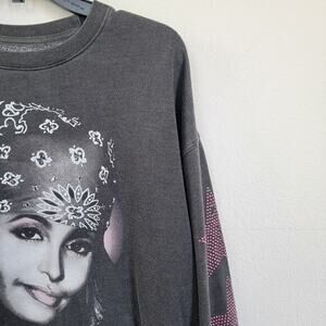 Aaliyah Goodie Two Sleeve Sweatshirt Star Women's Medium Gray EUC Y2K Style