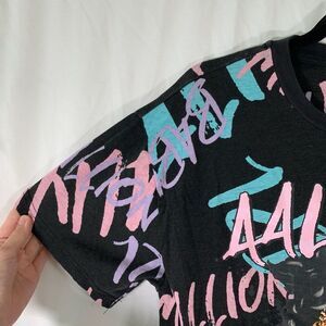 Aaliyah Shirt Women's Medium Black Graphic Print Short Sleeve Crew Neck