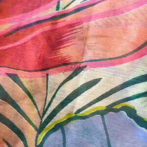 Aanoukis with Love Tropical Floral Dress. Beaded neckline. Tie at neck. Sheer swim cover.