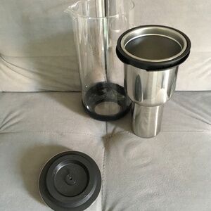 Stylish design without plastic. Makes water softer, cleaner and reduces heavy metals and organic impurities.