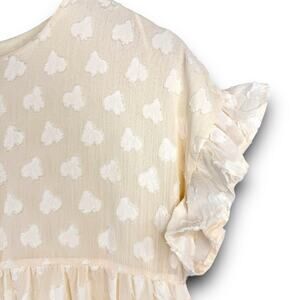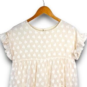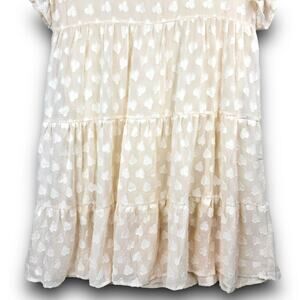 Aaron & Amber Casual Short Sleeve Ruffle Babydoll Dress Knee Length Cream Small