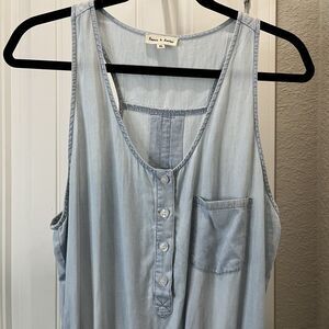 Aaron & Amber Chambray Light Blue Romper Shorts Womens Size M Tencel