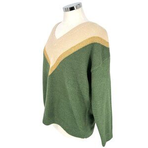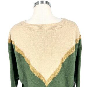 Aaron & Amber Chevron V-Neck Sweater Beige Gold Green Size Medium