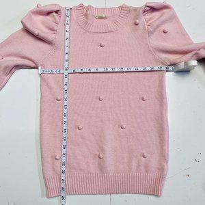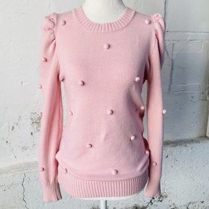 Aaron & Amber Light Pink Puff Sleeve Pom Pom Pullover Sweater (size M)