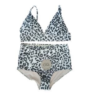 Aaron & Amber SZ M 2 Piece Leopard Print High Rise Deep Plunge Bikini NWT