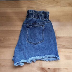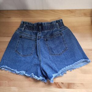 Aaron & Amberdenim high rise frayed bottom elastic waist shorts in great condition 26" waist 12" rise 14" long
