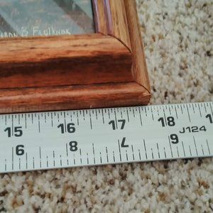 Framed Print called the Six O'Clock News. Print of a general store at dusk with a pickup truck sitting out front, American flag flying out front , old-time gas pump, and a group of geese in the foreground by artist Aaron B. Faulkner. It is listed as a 3-D print, # AF 2576. Unique double matting cut out in the shape of a house. The print is in the back and the front matting. It's hard to photograph a framed pix. Nice wood frame, glass front & finished back. Never used but backing does have 2 rips, see pix. Print alone sells for $50