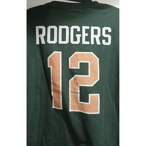 Support the Green Bay Packers with this official NFL Pro Line T-shirt featuring Aaron Rodgers #12 on the back and the Packers G logo on the front. Classic green cotton teeperfect for game day or any Packers fan collection.