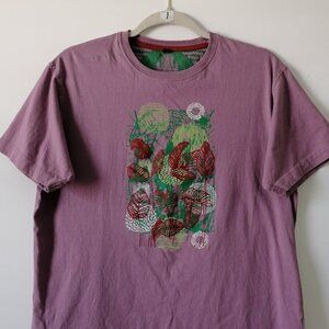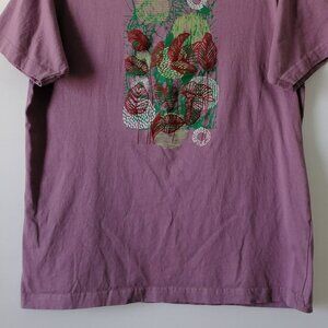 Aarong Mens Purple Crew Neck Short Sleeve Graphic Print Cotton T-Shirt Size XL