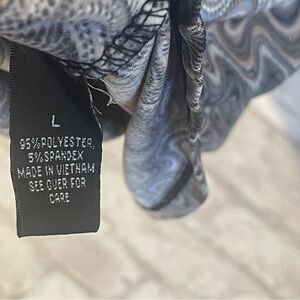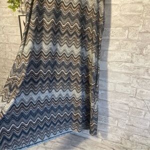 Ab STUDIO Jersey Knit Neutral Color Gray Blue Tan Pattern Print Dress Size Large