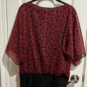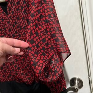 Ab Studio Short Sleeve Metallic Blouson Top Red MediumLike new wor…