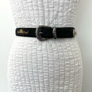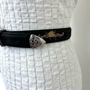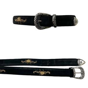 Abaco Paris Embroidered Leather Black Belt Western Boho Made in France 28/70