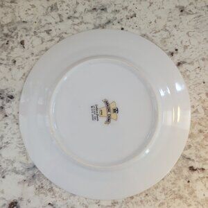 Gold trim shows minor wear consistent with age. Diameter = 6.5 inches.